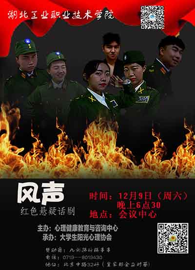 为进一步丰富我院校园文化生活,引导全院广大青年学生学习党史,学习革命英烈事迹,我院大学生阳光心理协会经过前期精心排练、汇演、试演,现将举办本学期最后一场大型话剧公演,欢迎广大师生届时前来观看。