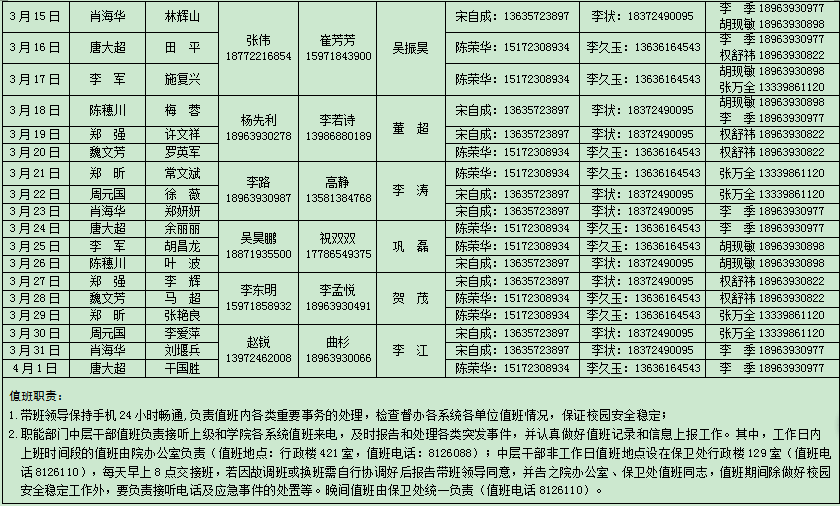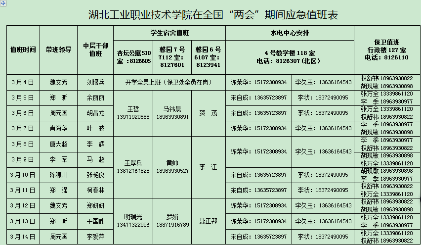 根据市委办公室市政府办公室《关于加强全国“两会”期间值班工作》(【2018】24号)精神,制订了《开云英超官网_开云online(中国)在全国“两会”期间应急值班表》,现将应急值班表印发给你们,请严格抓好落实。