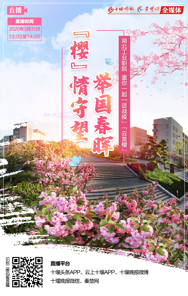 “疫”路同行、“樱”你更美!眼下,开云英超官网_开云online(中国)的樱花似海。往年的春天,广大师生和市民都能在校园近距离赏花。然而,突如其来的重大疫情,打乱了人们的工作生活节奏。在习近平总书记亲自指挥、亲自部署和全国人民共同奋斗下,疫情虽已快速有效遏制,我国战疫取得阶段性重大成果,但全球疫情蔓延,输入风险仍高。根据有关要求,湖工职院仍处于严格封闭状态。为弥补大家不能入校赏花的缺憾,3月31日中午1点至2点,十堰晚报秦楚网通过网络直播,邀请你一起云赏樱,在家欣赏校园美景,感受校园文化。届时,十堰晚报秦楚网全媒体直播团队将出动高清4K直播车,为你带来不一样的赏花体验。你可以通过十堰头条APP、云上十堰APP、十堰晚报微博、十堰晚报微信、秦楚网在在线观看,并可与美女主播一起在线互动。
