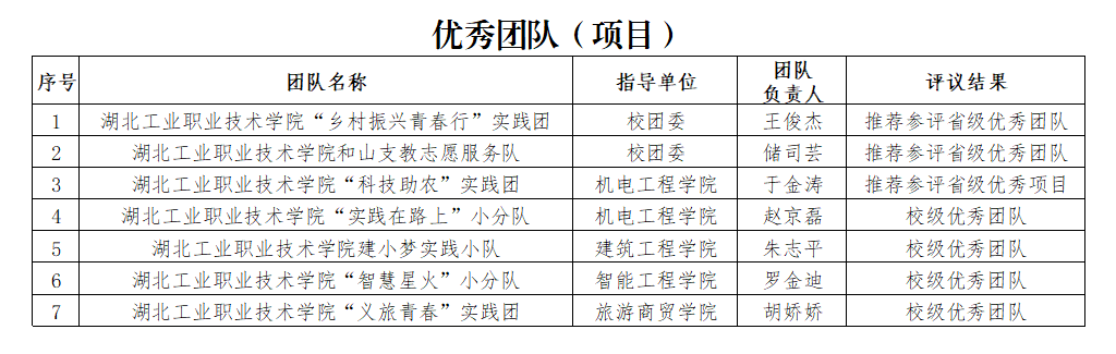 根据团省委、省学联《关于开展2022年湖北省大中专学生志愿者暑期文化科技卫生“三下乡”“返家乡”社会实践活动总结和通报工作的通知》及学校《关于开展 2022 年“三下乡”“返家乡” 社会实践活动总结及省级、校级优秀评选工作的通知》等文件相关精神。经宣传发动、二级学院推荐、组织校级评审等程序,我校拟推荐“乡村振兴青春行”三下乡社会实践团队等2个团队、1个项目和1个优秀个人为省级优秀候选,并报送团省委参评,拟表彰“开云英超官网_开云online(中国)建小梦实践小队”等4个团队和10名同学为校级优秀团队和个人(具体名单附后),先予以公示。