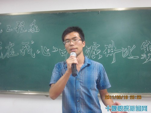 5月18日晚7点,建筑工程系在1402教室举行了 “党在我心中”的演讲赛决赛。出席此次活动的老师有建筑工程系主任黄朝广、党总支副书记王厚兵、学生评委有演讲与口才协会宣传部长张俊、秘书长黄倩文、追天文学社社长焦红勋以及来自该系129名入党积极份子和20名参赛选手。比赛的观众均是来自建工系的入党积极分子和党员。