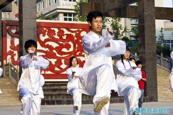 5月26日傍晚,明德广场身着红黄白三色系服的建工学子正进行着武当太极拳十八式比赛。同学们英姿飒爽、意气风发、跨步齐声、满怀青春激情,那一招一式,那自信的脸庞,在美丽夕阳的辉映下,成为校园一道亮丽风景线。