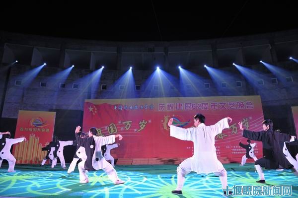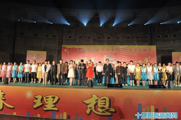 文艺晚会由院党委工作部、学生工作部(处)、团委、素质拓展中心主办。院长魏文芳致贺辞,对全院师生致以节日的问候,并深情回顾了祖国建国62周年的光辉历史和我院的发展历程,鼓励2011级新生们努力学习、奋发成才。魏文芳说,学院作为国家骨干高职建设院校、湖北省示范性高职院校,近年来改革发展取得了丰硕成果,较好地服务了地方经济社会发展,全院师生要紧紧围绕内涵建设等中心工作,努力拼搏,共创十堰职院的美好未来。