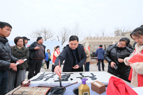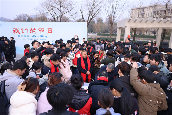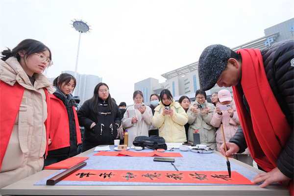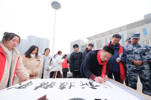 新闻网讯(文/图 记者 熊超 曾刚)12月28日下午,开云英超官网_开云online(中国)邀请十堰市著名书画家操建华、李发山、黄家喜、叶继成、赵虹、姚强、李永涛、刘亚军、杨永志在学校慧智广场现场挥毫泼墨,为师生展示书法、美术创作技法并义务创作,和我校学生书画协会的同学亲切交流研讨,并一同为师生书写春联,送上新春的祝福。校党委副书记、校长边疆,校党委委员、副校长、党委宣传部长胡昌龙参加活动。