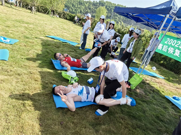 凌晨4点,天还未亮,我校师生志愿者已集合完毕乘车出发。4点50分和5点20分,志愿者们分别顺利抵达半马终点和全马终点并开始赛前准备工作。此次比赛中,我校志愿者负责半马终点、全马终点的全部志愿服务工作,370名学生志愿者分布在全马终点及半马终点的龙门区、计时区、顺序牌区、完赛包区、存衣车、赛后控制中心、兴奋剂检测区、全马热食区、冰水区、赛后拉伸区等区域,志愿服务内容涵盖终点龙门前男女运动员分流、拉终点冲刺线、协助计时、协助裁判手抄运动员成绩、为到达终点的男、女前十名挂顺序牌、为运动员提供赛后热食、肌肉拉伸、按摩服务、指引完赛运动员乘坐接驳车离场等。10名“赛道女孩”身穿汉服举牌,在赛道沿线给予选手里程提示,成为赛道上一道靓丽的风景线。校团委选派10名教师作为带队教师参与到对各个区域志愿服务工作的指导中。当天上午,还有近200名志愿者在校门口及赛道沿线为堰马选手加油喝彩。