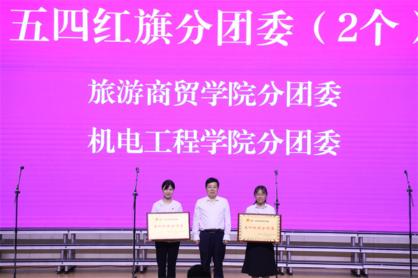 为激励和号召全校青年师生围绕学校中心工作奋发作为,加强团内创先争优工作,活动现场还举行了2023年度“五四”先进集体和个人表彰活动。与会领导为荣获“五四红旗分团委”“五四红旗团支部”“共青团工作先进个人”“优秀共青团干部 ”“优秀共青团员”的集体和个人代表颁发了奖牌、荣誉证书。