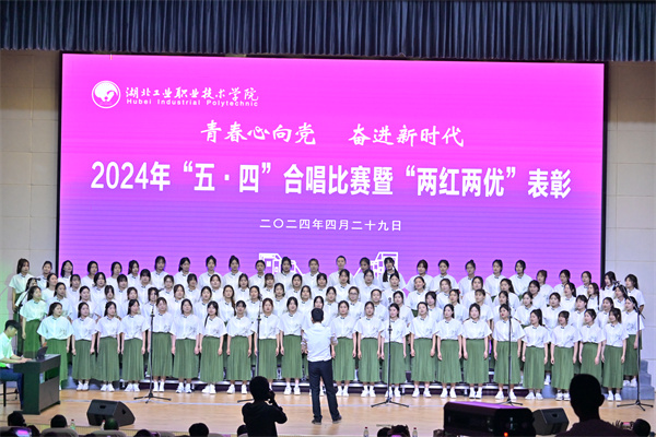 新闻网讯(文/郑丽琼 图/姚堃 赵太银 张逍杰)4月29日晚,和山会堂歌声嘹亮、掌声雷动,我校“青春心向党 奋进新时代”2024年五·四歌曲合唱比赛暨“两红两优”表彰活动举行。校党委委员、副校长胡昌龙,各二级学院党总支书记、分团委书记、师生代表四百余人到现场观赛。合唱比赛邀请到党委组织部、退休教职工服务中心、党委宣传部、人事处、校团委等部门负责人和相关老师担任评委。