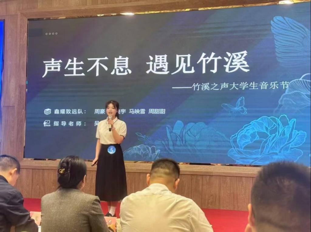 我校“鑫耀致远”团队策划的《“声生不息·遇见竹溪”大学生音乐节》项目,将竹溪县国家非遗“山二黄”戏曲与现代音乐风格相融合,试图打破非遗传承壁垒,让非遗文化在年轻群体中广泛传播,同时展示竹溪的风土人情魅力。