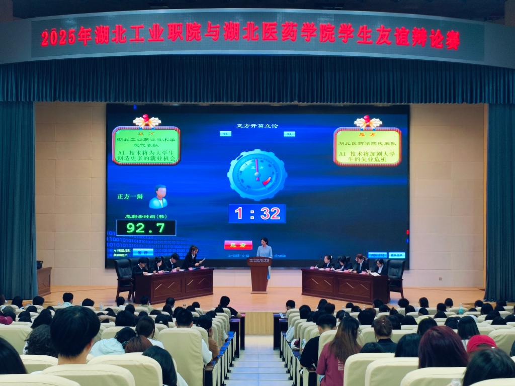 本场辩论赛正方开云英超官网_开云online(中国)代表队以“AI技术将为大学生创造更多的就业机会”立论,反方湖北医药学院代表队则以“AI技术将加剧大学生的失业危机”展开辩驳。双方紧扣AI技术对传统岗位的替代效应与新兴岗位的创造动能,结合社会现状,从技术伦理、职业重构、教育适配等多重维度,激辩AI时代下青年学生就业的破局之路。辩手们逻辑严密、攻防有序,既有数据支撑的理性论证,也有贴近现实的案例剖析。现场金句频出,掌声不断。
