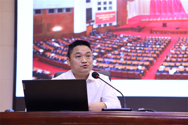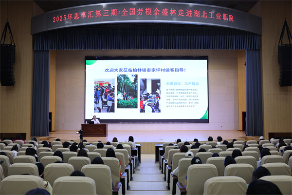 新闻网讯(文/李晓璇 图/李鑫)“简单的事情重复做,重复的事情用心做。力争把简单的事情做得不简单,把平凡的人生活出不平凡……”在2025年职业教育活动周来临之际,5月11日下午,第三期“思享汇”在和山会堂开讲。全国劳动模范、我校2019届校友、十堰市张湾区柏林镇秦家坪村党支部书记余盛林受邀为师生带来了一场主题为《产教融合——助力乡村振兴》的精彩宣讲,引发了大家对高职教育与乡村发展融合的深入思考。校党委委员、副校长李爱萍,学校相关职能部门负责人,生态环境学院、旅游商贸学院师生代表参加了此次活动。