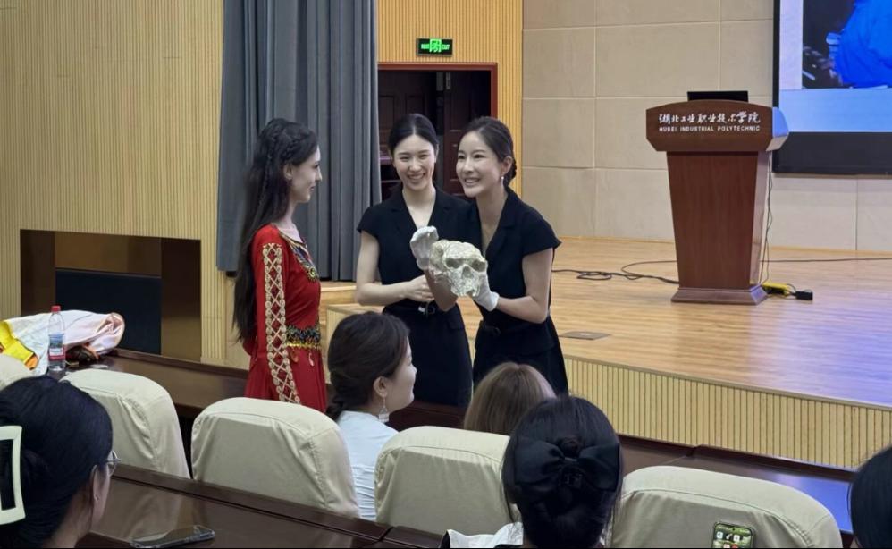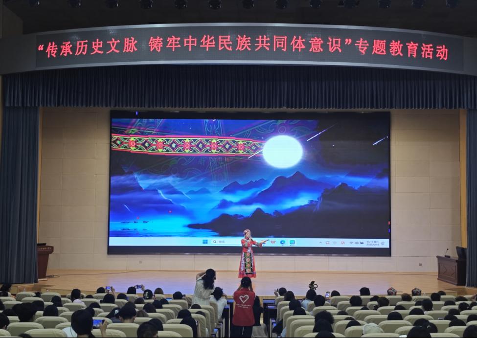 《郧县人——我们从哪里来》文化讲堂同样备受关注。通过生动的讲解和互动,师生们深入了解到郧县人遗址的考古发现过程及其对人类起源研究的重要意义。来自十堰市博物馆的讲解员引导同学们探索人类演化的奥秘,活动现场,少数民族学生代表身着民族服饰,积极参与互动,展现出浓厚的文化兴趣和民族自豪感。