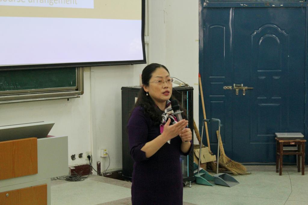 会议伊始,会长苏宇菲对新会员的到来表示热烈欢迎并对英语协会做了简要的说明,紧接着以PPT的形式向新会员们介绍了指导老师蒋菁华以及各部门干部所负责的工作,帮助新会员了解部门职能。蒋老师结合自己的从教经验给同学们讲述了“3P”学习法,即“Plan、Perseverance、Practice”。同学们认真听讲,现场氛围十分融洽。最后,两名新生代表在发言中表达了自己的想法和对未来的展望,希望在协会里可以学到更多的知识,和同学们共同成长。